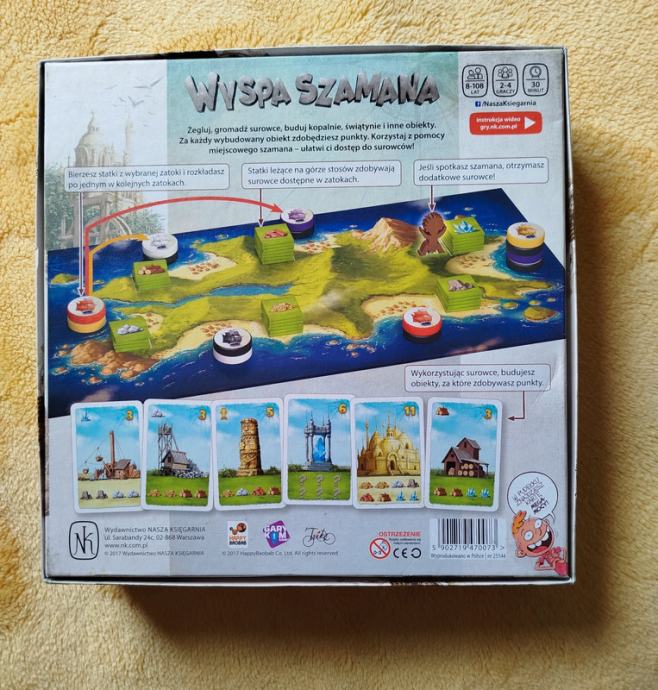 U Šamanovom otoku igrači plove svojim brodovima oko mističnog otoka, prikupljaju resurse uz pomoć šamana i koriste ih za izgradnju raznih građevina poput hramova, rudnika i kipova. Ključ pobjede je pametno kretanje, blokiranje protivnika u zaljevima i učinkovito upravljanje resursima.