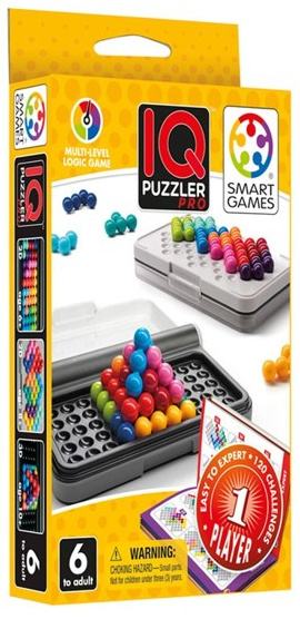 120 challenges in three playing modes!Multiple levels of brain teasing fun! SmartGames new IQ-Puzzler Pro features 120 challenges in three playing modes, including both 2D and 3D challenges! The top of the game board features a grid for 2D challenges and a separate grid for 3D pyramid challenges, while the bottom of the board features a completely different 2D challenge grid. All in the same compact, portable travel case.Contents:1 compact game board with transparent lid12 colourful puzzle pieces1 booklet with 120 challenges and solutionsDimensions: 9,8 x 2,9 x 14,4 cm (LxWxH)