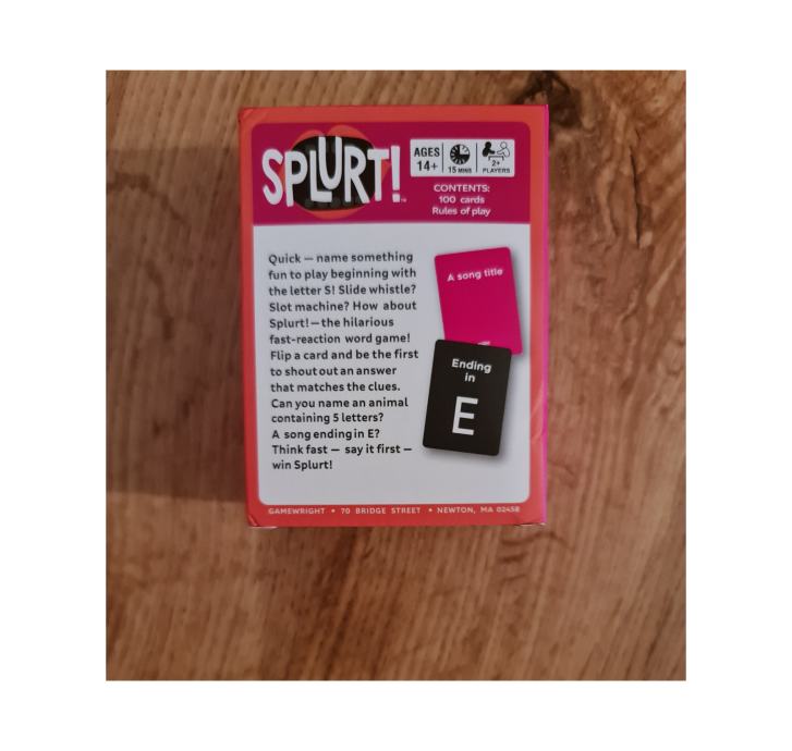 Splurt je zabavna i brza društvena igra riječi u kojoj se igrači natječu tko će prvi smisliti i izgovoriti riječ koja ispunjava uvjete s karata. Igra se tako što se karte promiješaju i stave na stol, okrene se gornja karta i svi igrači istovremeno pokušavaju smisliti riječ koja odgovara uvjetu s karte, primjerice određeni broj slova, početno ili završno slovo ili neka kategorija, prvi igrač koji glasno izgovori točnu riječ osvaja kartu, zatim se okreće nova karta i igra se nastavlja dok se ne potroši špil, a pobjeđuje igrač s najviše osvojenih karata. Može se igrati s 2 ili više igrača, a partija traje oko 10–30 minuta i vrlo je jednostavna za naučiti i igrati.