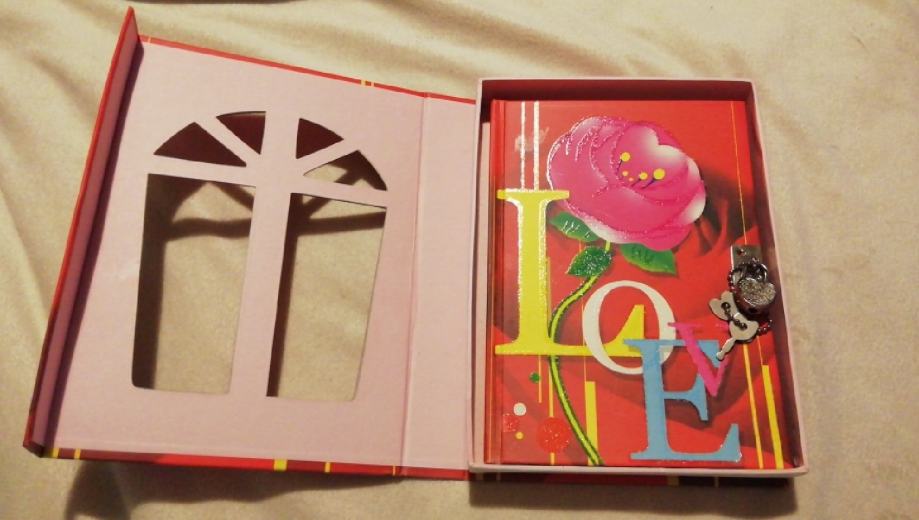Spomenar ili sarena tekica, sa tvrdim koricama. Nalazi se u ukrasnoj kutiji. Nije koristen ali od stajanja ima nedostatke. Papir vise nije ravan i na nekim stranicama se vidi od vlage da je promijenjena boja kao i na unutrasnjoj strani kutije.