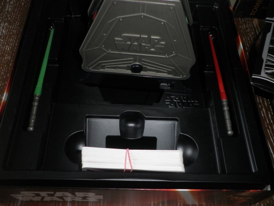 The 64 Jedi and Sith cards are shuffled. Each player is dealt three cards, which he takes to his hand. The remaining