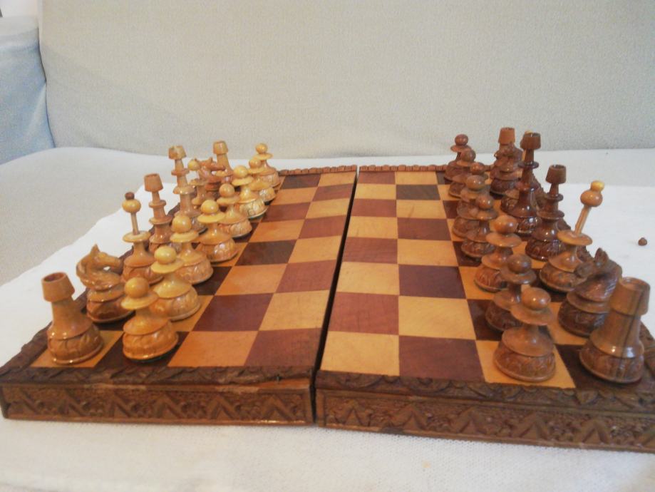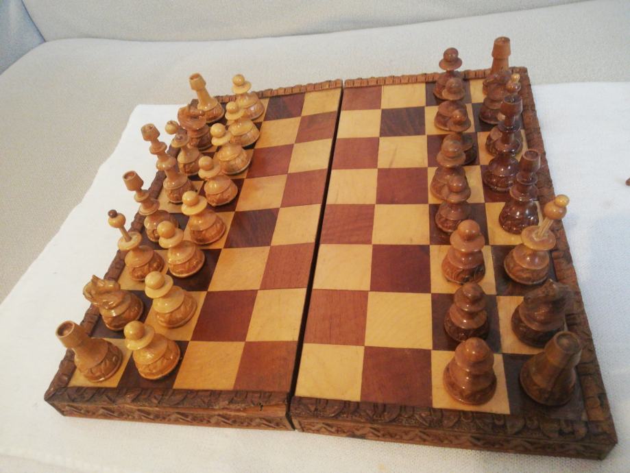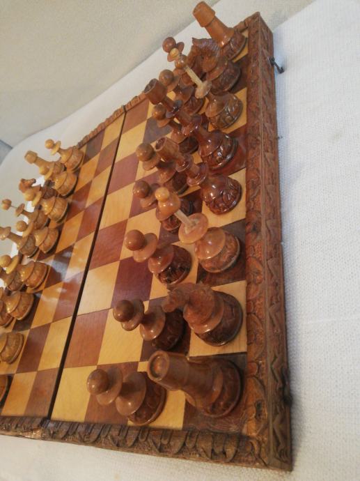 Prekrasan starinski šah sa rez arenom kutijom i figuricama