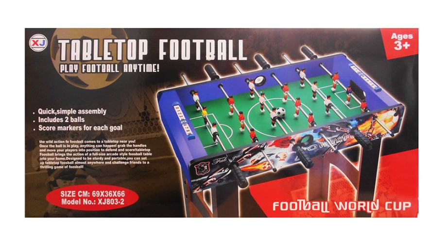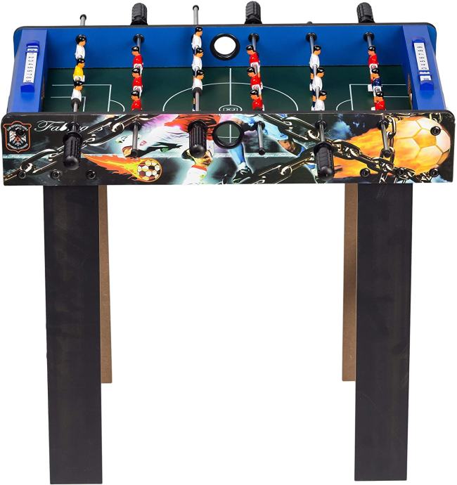 Stolni nogomet ima potpuno drvenu konstrukciju, oslikane rubove s naglascima na detalje (kao što su slike vatrene lopte na bočnim stranama), brojač golova, dolazi s dvije lopte i ručkama koje se ne kližu. Idealno za 2-4 igrača ili igračice!
