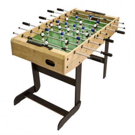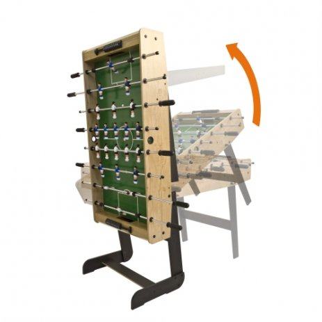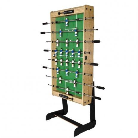 Ovaj stolni nogomet ima vrlo dobar omjer kvalitete i performansi. Glavna značajka ovog modela je sklopivi mehanizam. Lako se može pohraniti u nekoliko koraka nakon Igre. Osiguran je sa dva osigurača i pruža stabilnost na nogama. Ostale značajke, ima neklizajuçe, ergonomske ručke, ležajeve za jednostavnu igru, ( Lopta se ne može ostati leži u kutu), visoka stabilnost. Stolni nogomet se isporučuje sa detaljnim uputama za montažu u kratkom vremenu! Sve je uključeno u opseg isporuke, kako bi mogli započeti igru odmah nakon montaže.