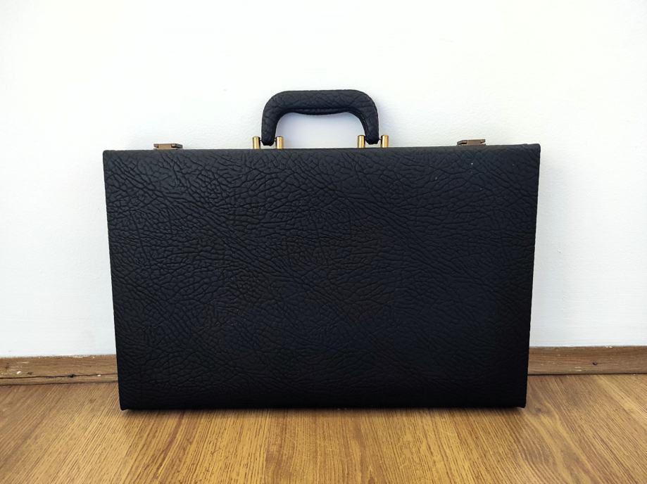 Veličina kožnog kofera je 44,5×28,5×5,5 cm.