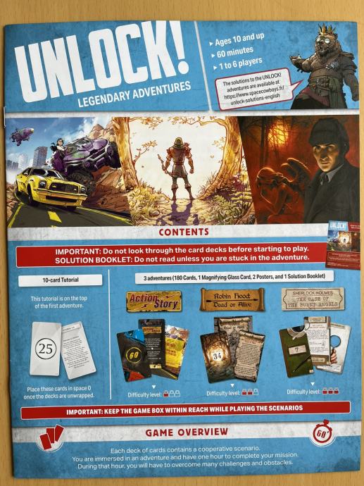 Društvena igra "Unlock! Legendary Adventures". Igra je u odličnom stanju - jednom odigrano, sve komponente su sačuvane i vraćene u početno stanje, karte su vraćene u originalni poredak.