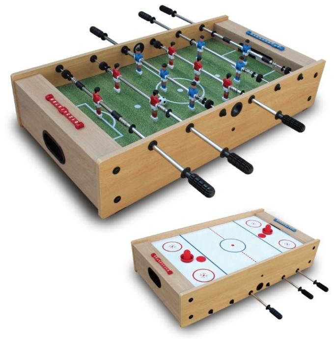 Nogomet i stolni hokej 2u1 u kvalitetnom okviru made in Italy. Zbog svoje kompaktnosti može se nositi bilo gdje. Podloga za igru ima posebnu travnatu grafiku.Debljina palice 13 mmU paketu dobijete 2 nogometne loptePaket uključuje 2 hokejaška paka i 2 hokejaške paliceKvalitetni materijali, velika pozornost posvećena detaljimaTeleskopske šipkePodloga za igru je laminiranaBrojač golovaDimenzije: 97 x 51 x 20 cmTežina: 14 kg