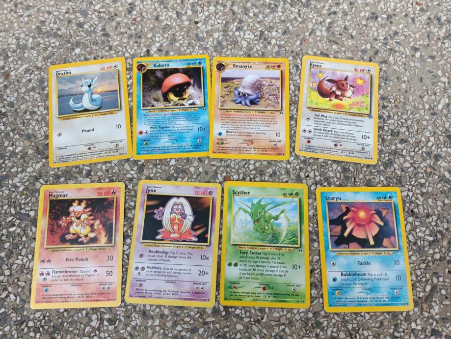 Prodajem oko 150 Pokemon karata koje sam skupljao u mlađim danima. Sve karte su iz osnovnog seta (prva i druga edicija), džungle ili fosilnog te raznih Neo setova (Revelation, Genesis, itd.).