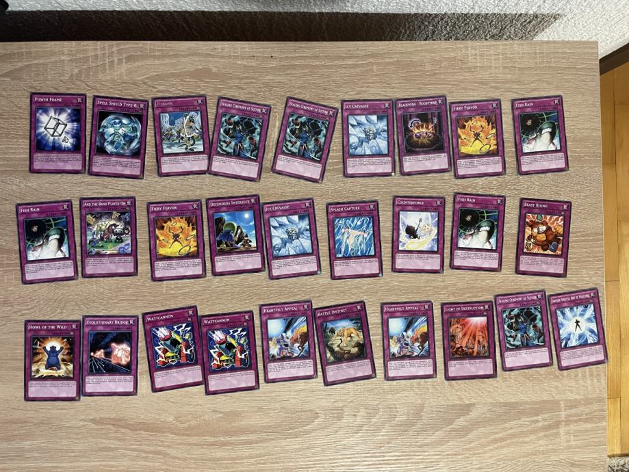 Prodajem lot od 155 YuGiOh! karata: 102 common/rare effect monster karata, 25 common/rare spell karata i 28 common/rare trap karata.