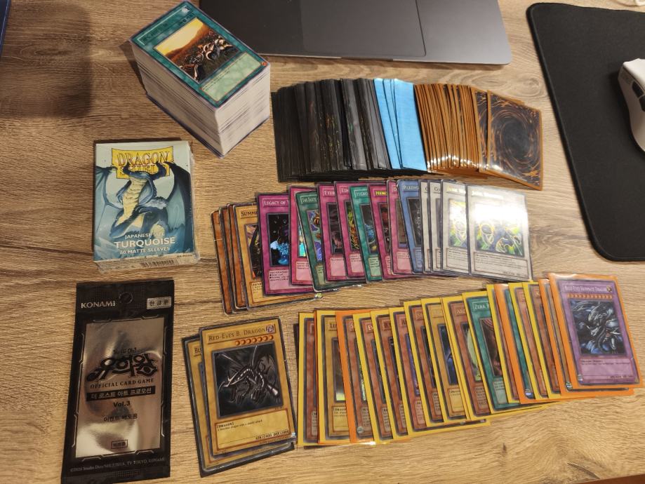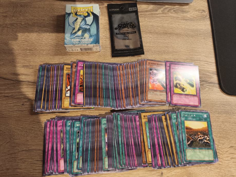 Razni omoti, korejski buster vol 3 zapakiran, dragon shield turquoise zapakirani omoti, common karte iz korejskog DCR, LON i LOD bustera + nekoliko zlatnih karata na engleskom
