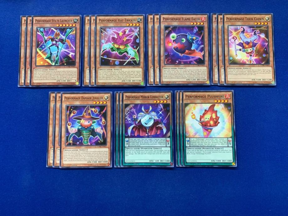 Prodajem Dennis McField's Performage Deck iz Yu-gi-oh! ARC-V popis karata je napisan dolje. Karte su original i na engleskom. U cijenu nije uracunata postarina. Ako zelite neke dodatne karte da se ubace, cijena ce biti veca ovisno o kojoj se karti radi.
