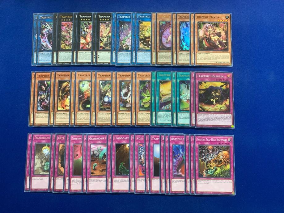 Prodajem Traptrix & Trap Hole Deck popis karata je napisan dolje. Karte su original i na engleskom. U cijenu nije uracunata postarina. Ako zelite neke dodatne karte da se ubace, cijena ce biti veca ovisno o kojoj se karti radi.