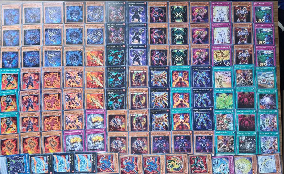80% karata su komoni ostalo su rare i veći rarity. Nastojao sam popuniti tin sa kartama GX generacije i arctypova.