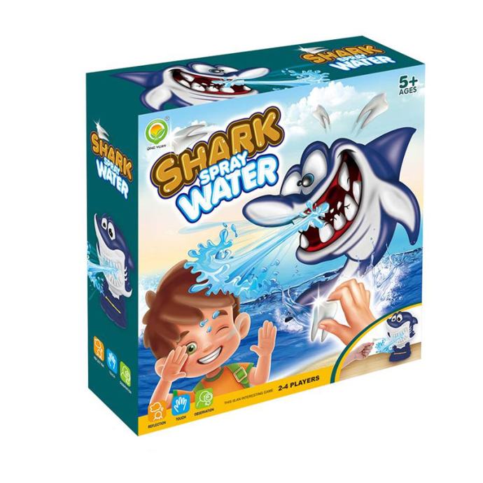 Igračka s raspršivačem vode prvo se napuni vodom, a zatim se umetnu zubi kroz rupu. Igrač tada može izvaditi zube morskog psa naizmjence. Nakon što je zub mekan i izvađen, voda će nasumično prskati i pružiti vam puno zabave.