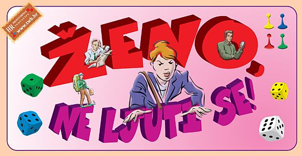 ŽENO, NE LJUTI SE - Društvena igra za djecu i odrasle, varijacija na temu planetarne igre 'Čovječe, ne ljuti se';. Nije za djecu ispod 5 godina.