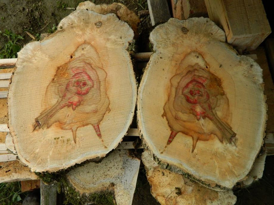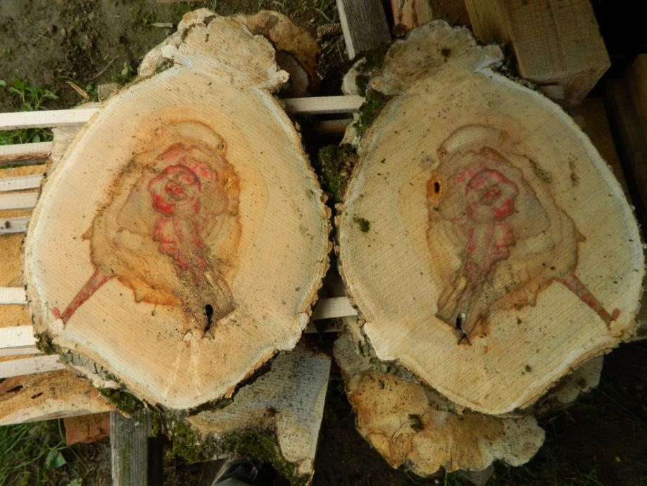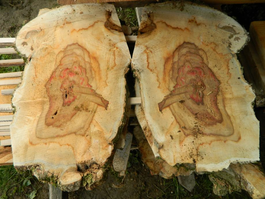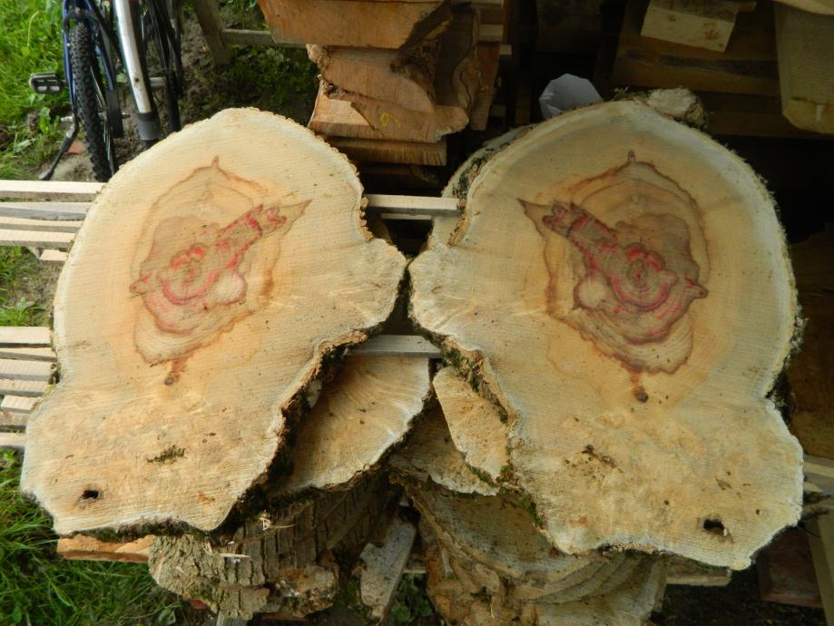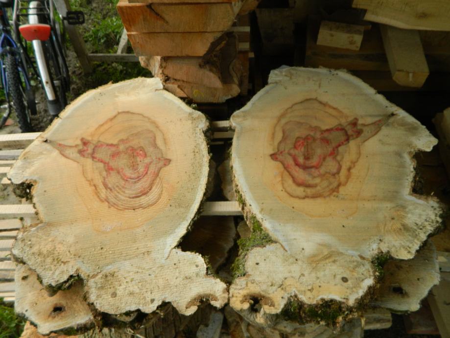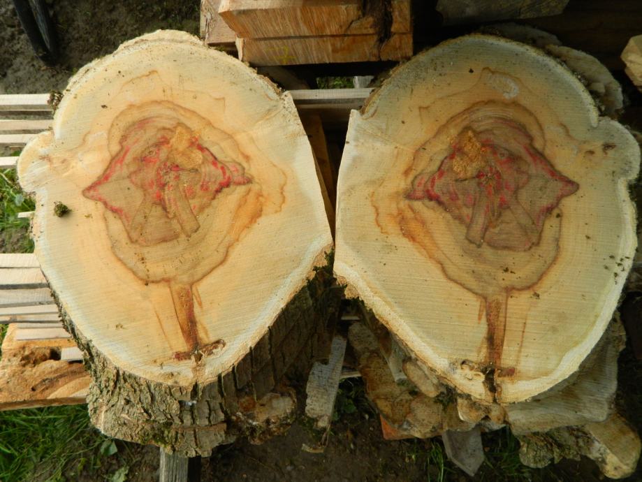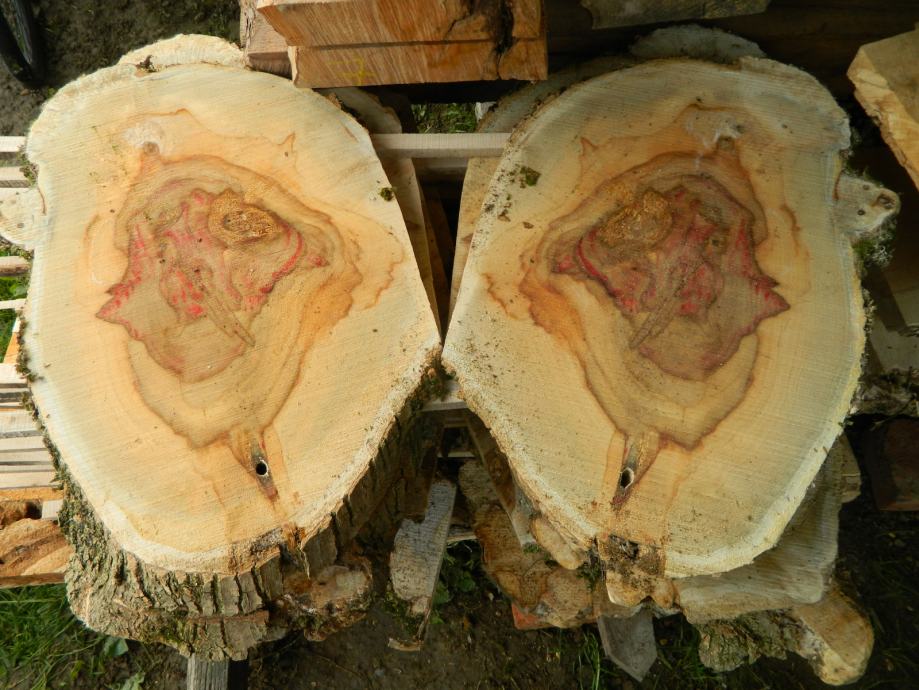 Prodajem poprečno piljene pod 45 stupnjeva "kotače" drveta javora negundovca sa prirodnom roznom bojom vidljivo na slikama