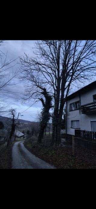 Stabla se nalaze u neposrednoj blizini kuće i električnih kablova. Traži se isključivo profesionalna ekipa s dizalicom (korpom) i iskustvom u kontroliranom rušenju u uskim prostorima.