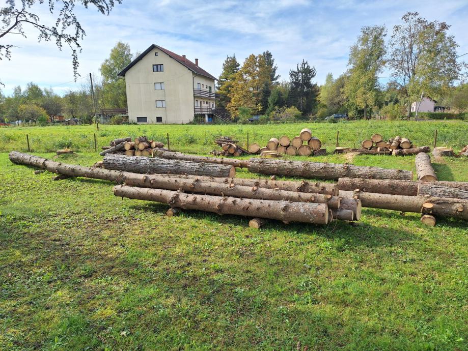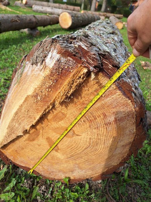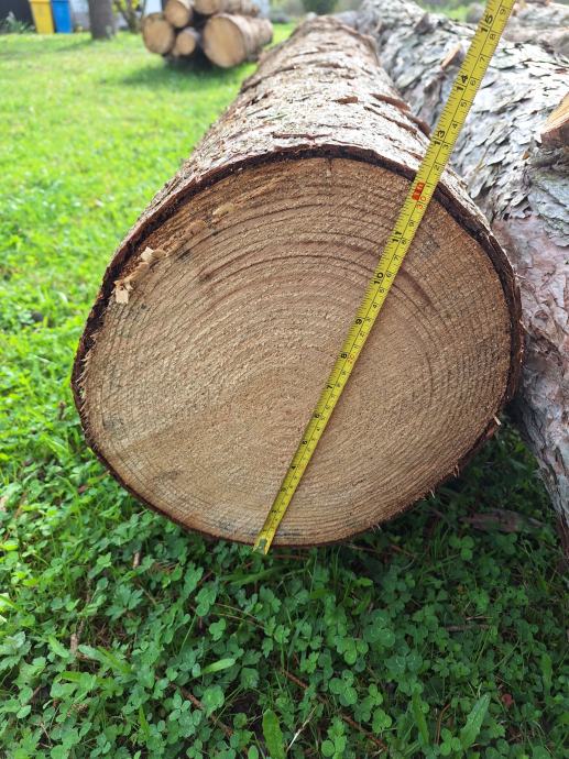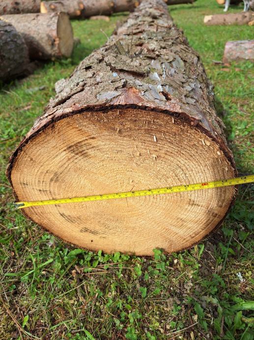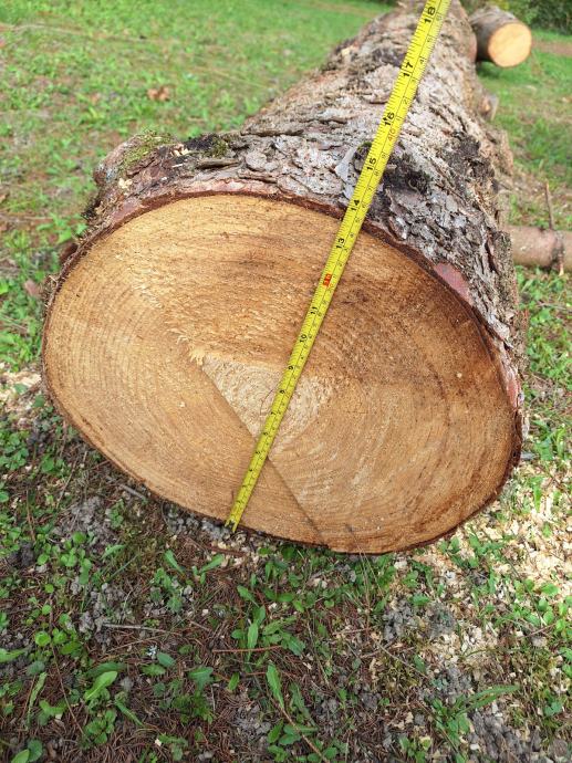 Trupci Bora i Jelke 3m dužine i promjer od 30cm, 40 com do 50 cm. Cijena za sve trupce 350 EUR, za pojedinačne trupce po dogovoru ovisno o promjeru i stanju (50 EUR).