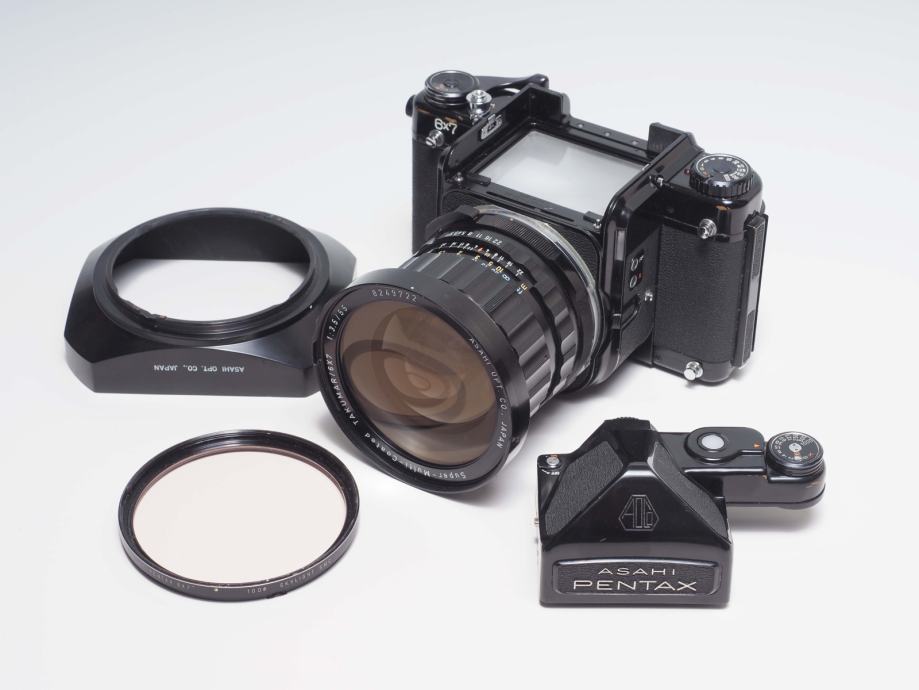 ASAHI PENTAX 6x7 cm je vrhunska "old school" analogna kamera srednjeg formata koja daje fenomenalne rezultate onom tko se njome zna služiti. Zbog nanadmašne SMC Takumar optike i jedinstvene tehnike ("veliki SLR") danas predstavlja i numizmatsku vrijednost.