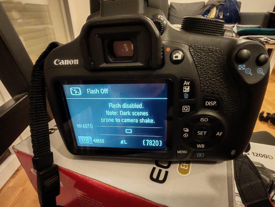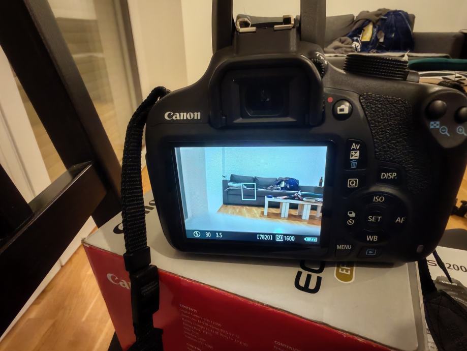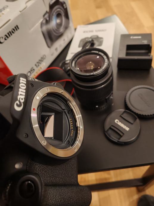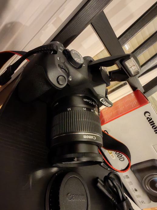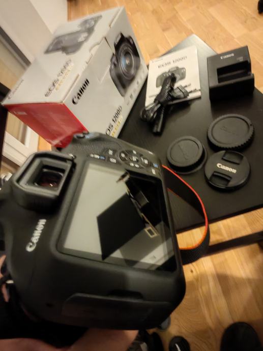 1200d body, 18-55 originalni objektiv, baterija, punjač, treger, uputstva, originalna ambalaža, SD memory kartica, poklopci objektiva i bodya. Bez tragova korištenja, novo, idealno kao poklon.