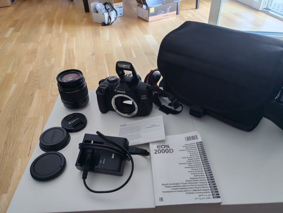 Canon 2000d body, 18-55 originalni objektiv, baterija, punjač, uputstva, originalna torba, treger, poklopci objektiva i bodya