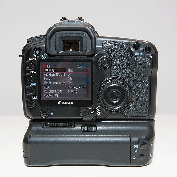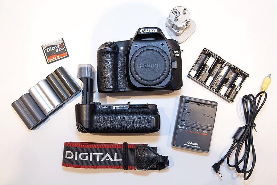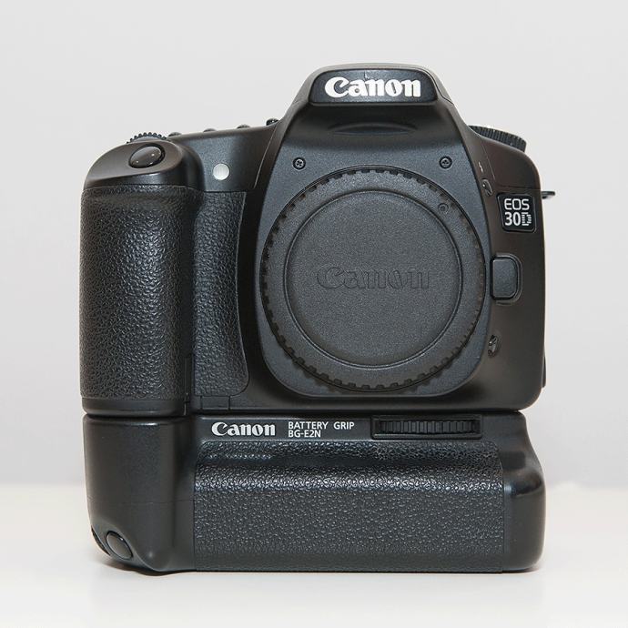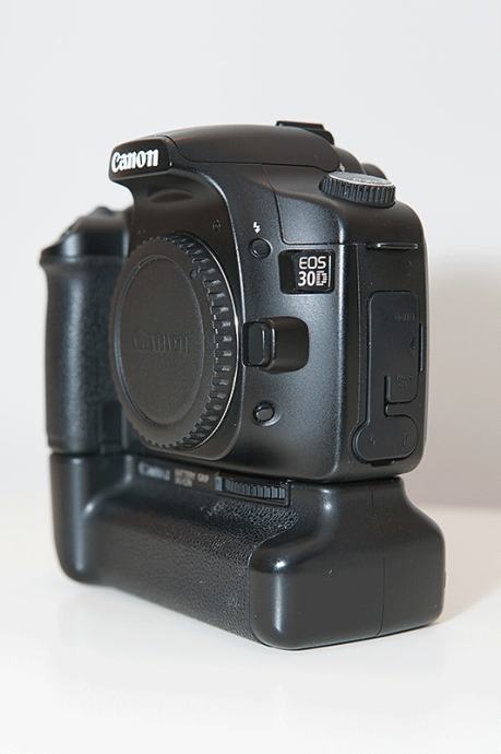 Canon 30D, orginal grip, uložnica za grip na koju se stavi 6 AA baterija,