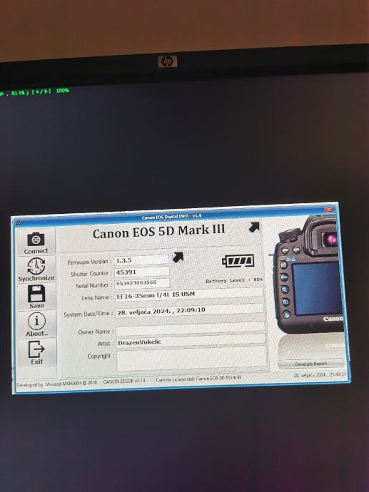 Aparat i original grip su u jako dobrom stanju, broj okidanja je: 45391.