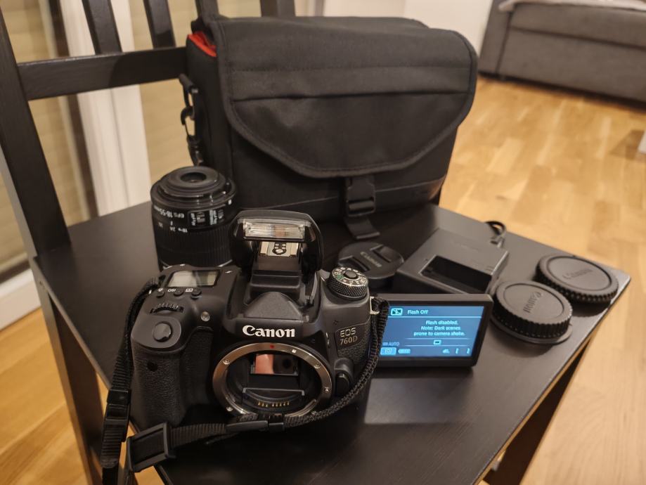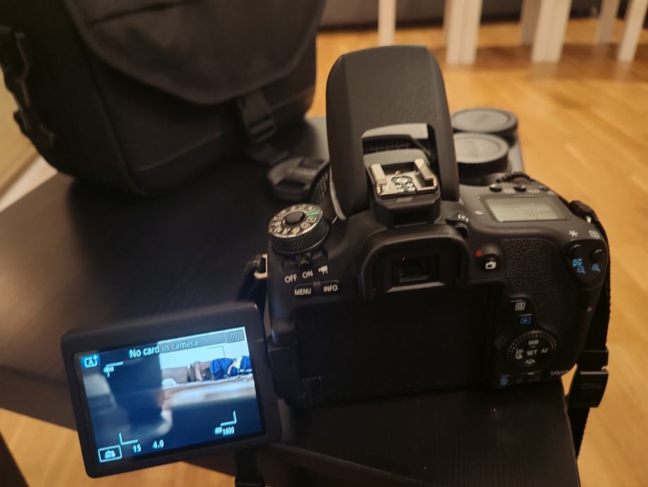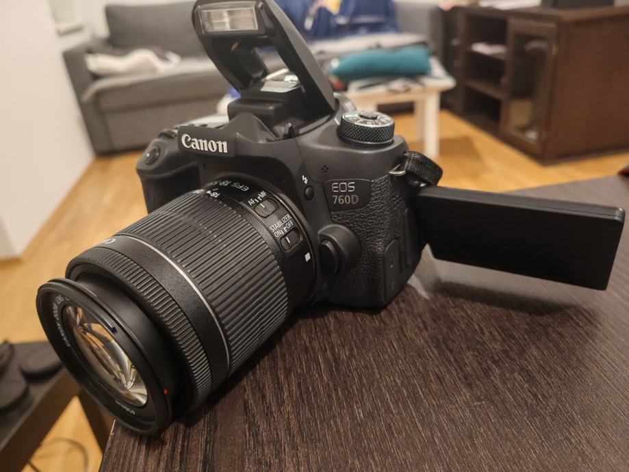 760d body, 18-55 originalni STM objektiv, poklopci objektiva i bodya, punjač, baterija, treger, originalna Canon torba. Bez tragova korištenja, bez oštećenja, kao nov