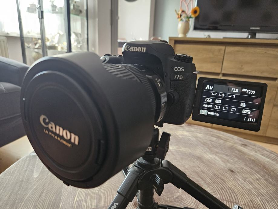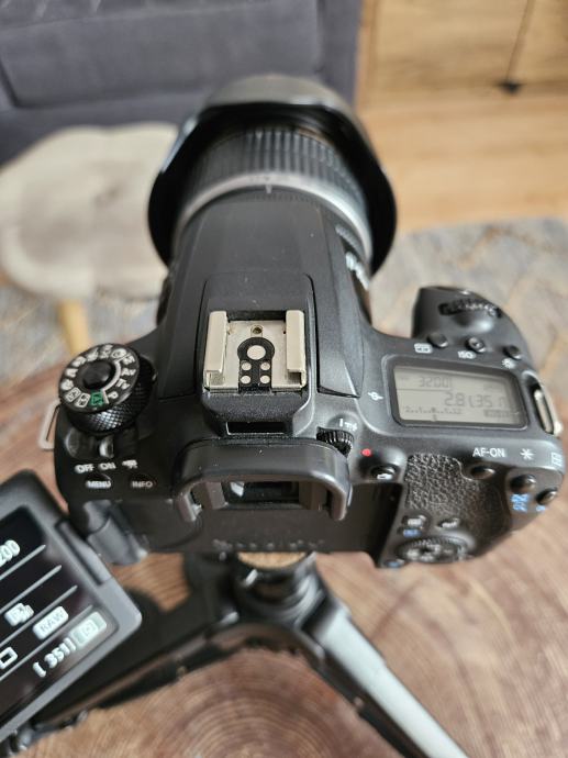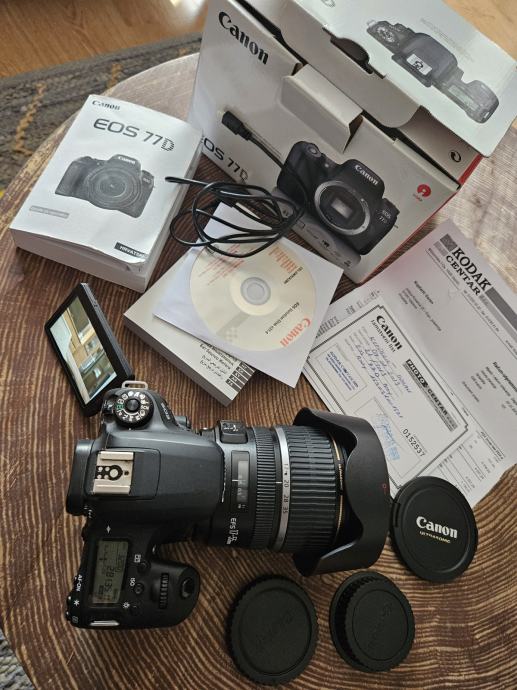 Oprema je rabljena i radi odlično. Model 77D iz srednje klase Canon aparata. Izuzetno jednostavan za korištenje. 24.2MP senzor. Zakretni LCD zaslon na dodir. WiFi ili NFC za spajanje na računalo, tablet ili mobitel.