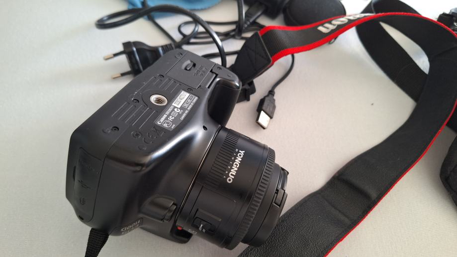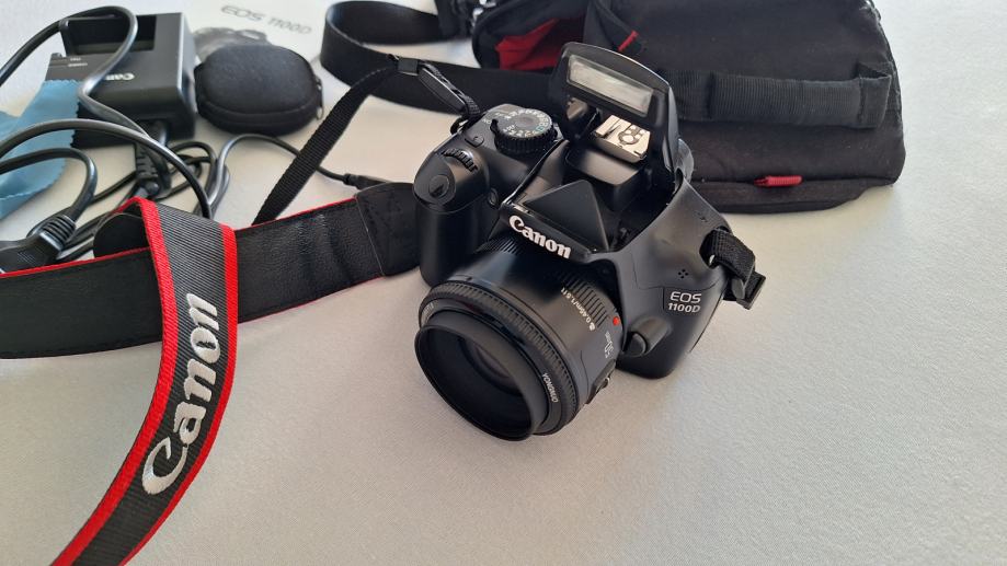 Canon EOS 1100D, objektiv Yongnuo EF 50mm f/1.8 torbica kartica