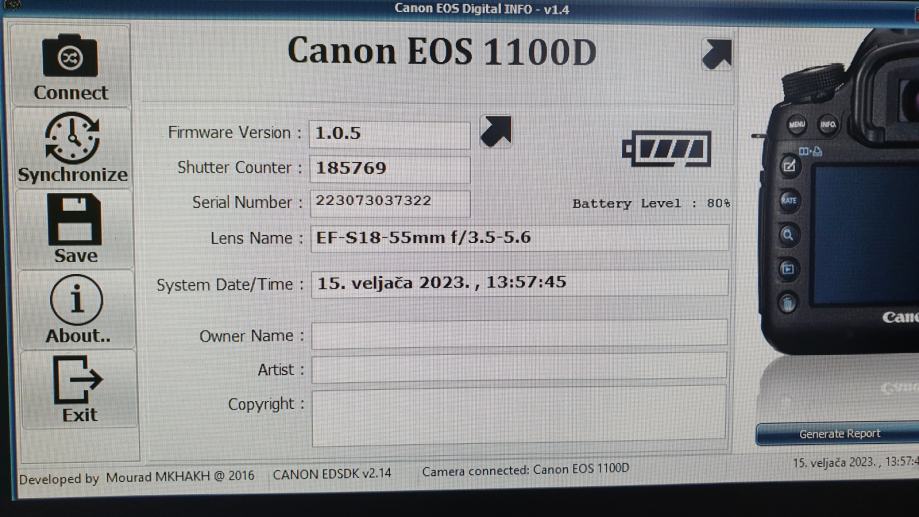 Aparat ispravan, dolazi u originalnom pakiranju. Punjač, baterija ,kablovi, objektiv 18-55mm.