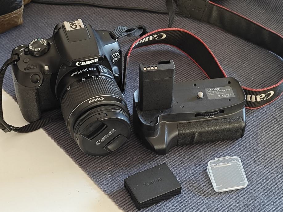 Canon EOS 1300D, 18-55mm, grip, 2 x baterija, SD