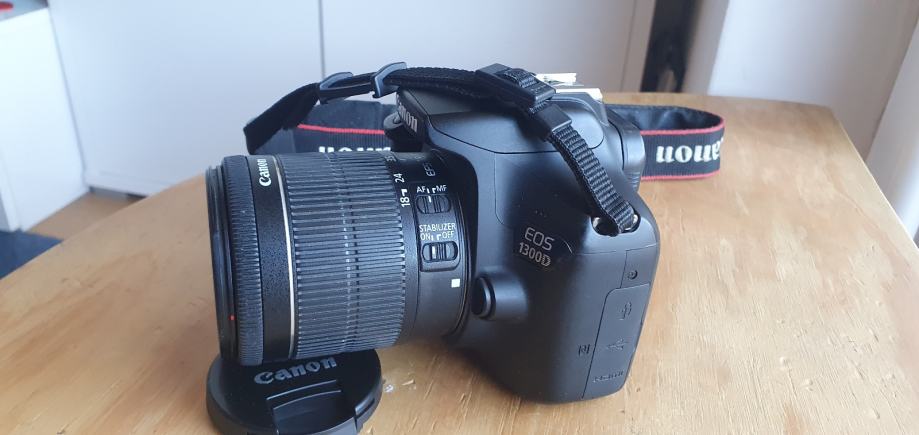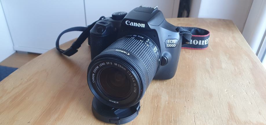 Prodajem rabljeni Canon EOS 1300D DSLR fotoaparat s EF-S 18-55mm IS STM objektivom, SD karticom 32GB i torbom. Fotoaparat ima 18 megapiksela, APS-C senzor i snima Full HD (1920x1080) video. Ima WiFi povezivanje za prijenos slika i daljinsko fotografiranje putem smartphonea. Dolazi kao kompletni set za svakog tko traži kvalitetni ulaz u svijet DSLR fotografije. Fotoaparat je u odličnom stanju, jako malo korišten, objektiv bez crtica ili zamagljenja, autofokus i stabilizacija rade savršeno.