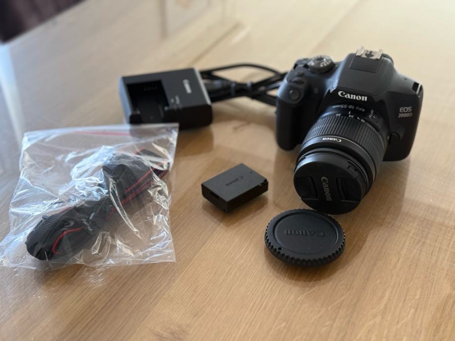 Prodajem Canon EOS 2000D, odličan DSLR fotoaparat za početnike i entuzijaste koji žele kvalitetne fotografije i Full HD video zapise. Kao nov bez jedne ogrebotine.