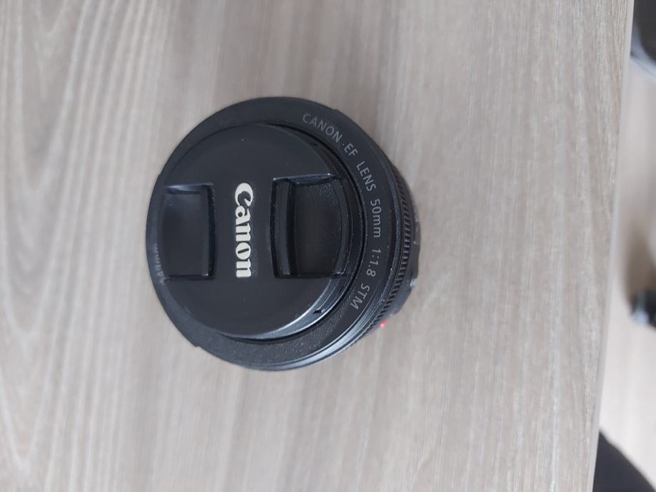 Dolazi i s 18-55mm objektivom! Za dodatnih 80€ mogu poslati i navodno jedan od best-buy objektiva Canon EF 50mm f/1.8 STM (na slici). Nov je oko 130 €. S njim je napravljeno možda 20 slika (ako).