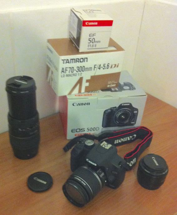 Canon EOS 500D kit + Canon EF 50mm 1.8 + Tamron AF70-300mm
