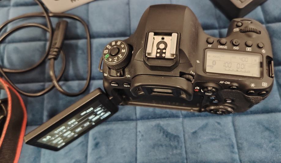 Canon DSLR fotoaparat, očuvan i ispravan, korišten u učionici i foto studiju. Uz fotoaparat ide i ostatak opreme s fotografija. Detaljne specifikacije su dostupne na internetu. Bez zamjena.