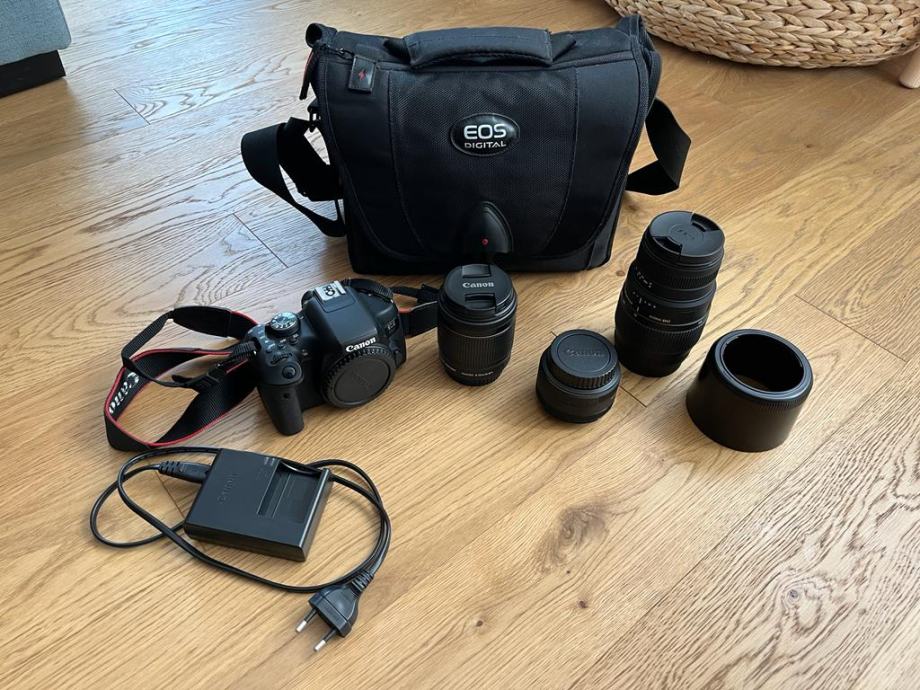 Uređaj je očuvan uz njega idu 3 dodatna objektiva, stativ i torba.