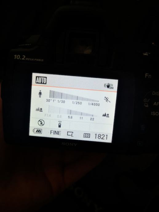 Ima 2 baterije, daljenski za slikanje s daljine, torbica...