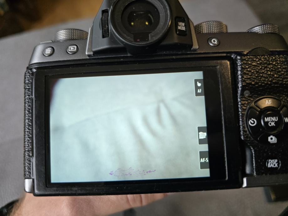 Na ekranu vidljiva ružičasta mrlja (ne utječe na rad fotoaparata niti se vidi na fotografijama!).