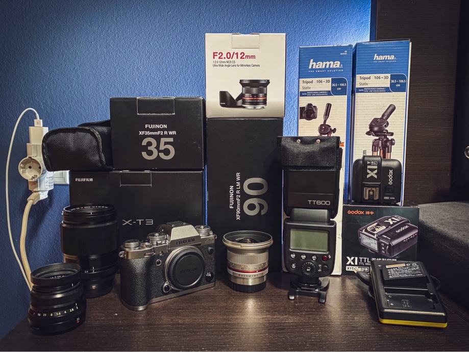 Fujifilm xt3 skoro nov (10/2020) sa 3 objektiva i dodatnom opremom, cijena za komplet 14 000 kn