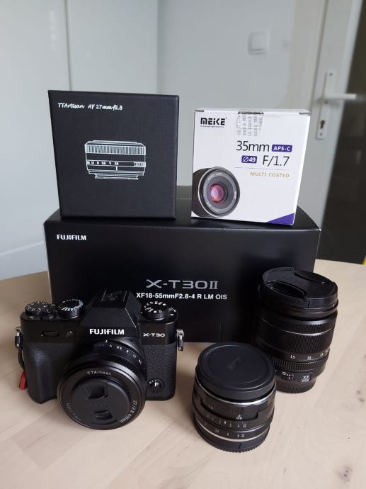 Prodajem Fujifilm X-T30ii u kompletu s objektivima XF 18-55 F2.8-4 R LM OIS, TTArtisan AF 27mm f2.8 i Meike 35mm f1.7.
