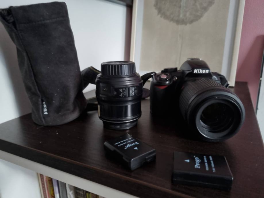 U kompletu dolaze 2 objektiva, 2 baterije (neoriginalne, Progo), Nikon remen, punjač za baterije.