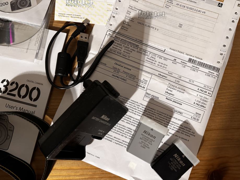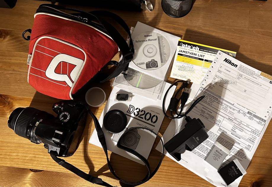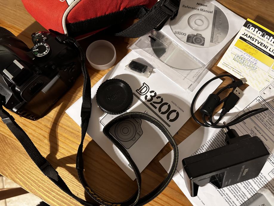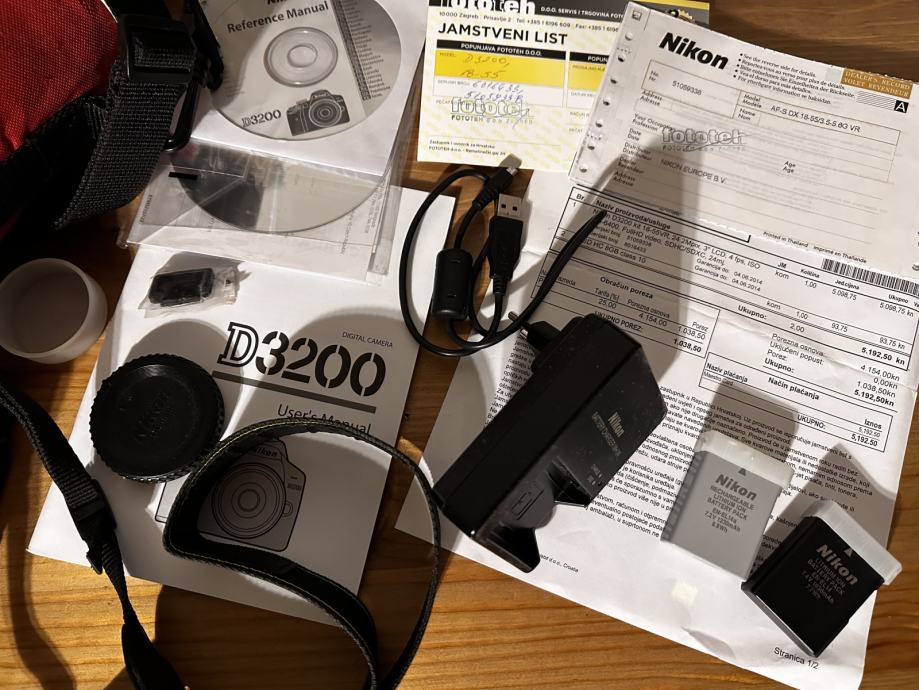 Nikon D3200… U odličnom stanju, malo korišten. Uz njega dolazi torbica i baterija i punjač te objektiv Nikkor VR 18-55 / f3.5