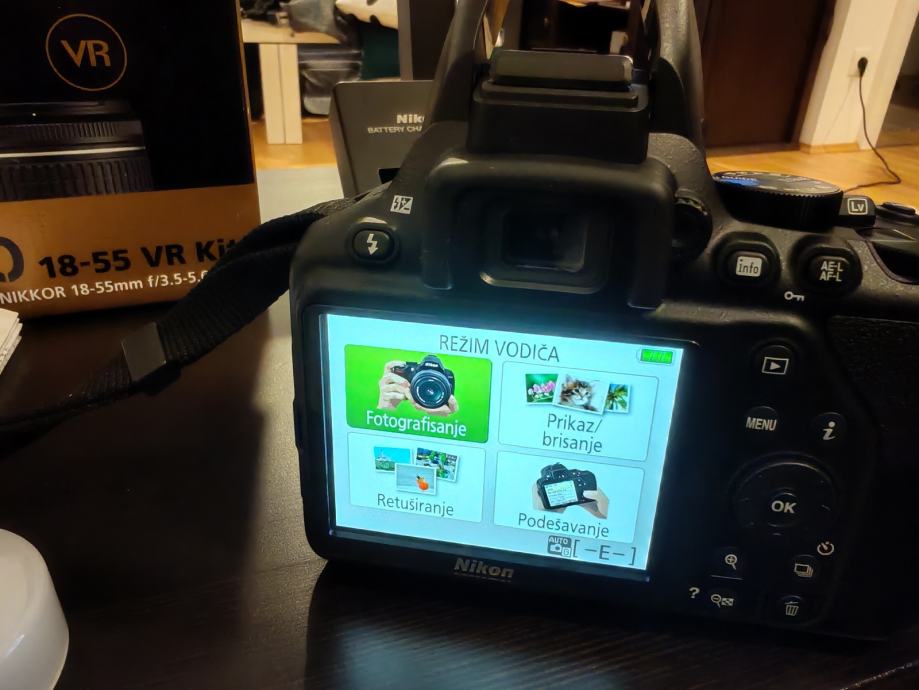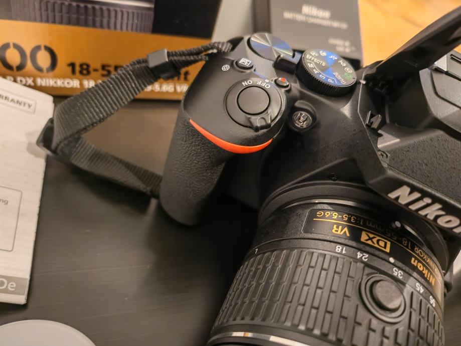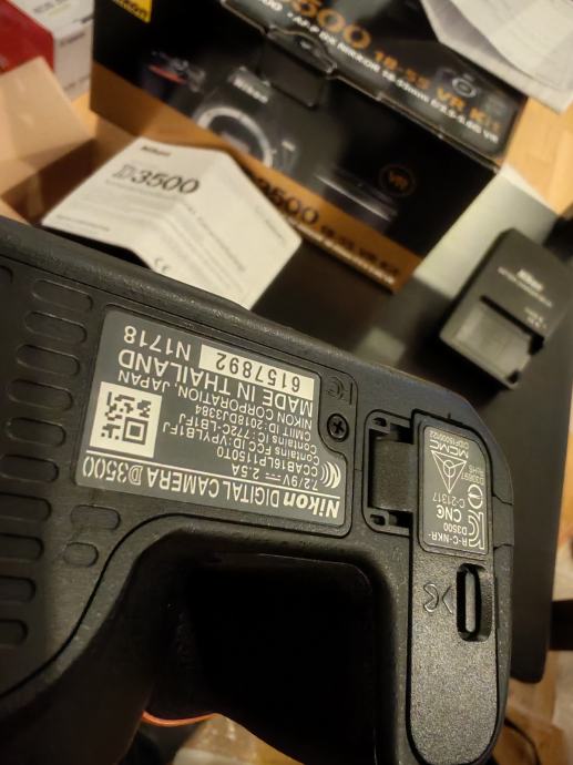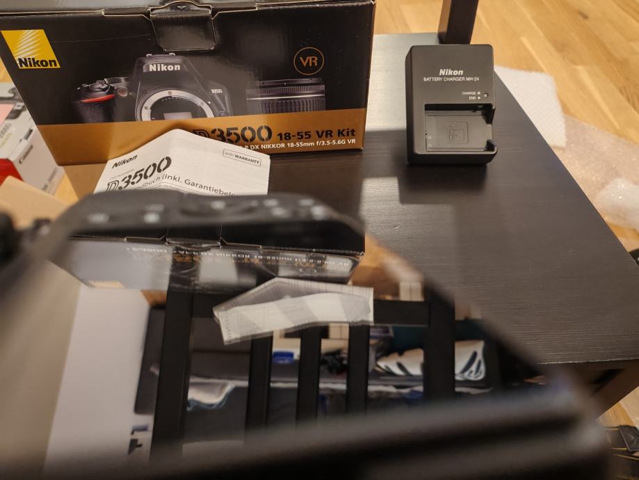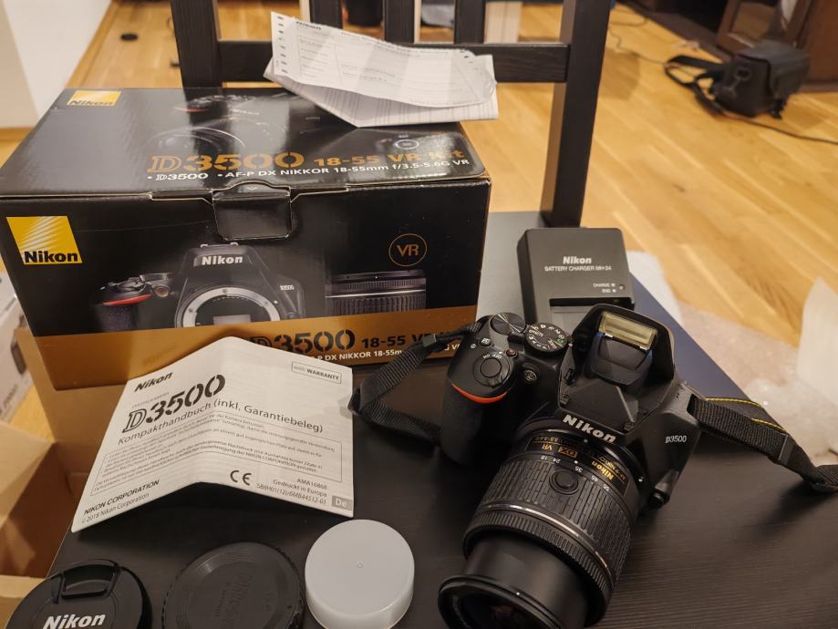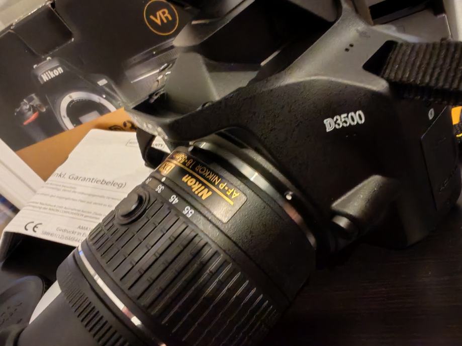 Nikon D3500 DSLR fotoaparat s AF-P DX Nikkor 18-55mm f/3.5-5.6G VR objektivom. Aparat ima APS-C senzor od 24,2 megapiksela i snima video u Full HD rezoluciji (1920x1080). Dolazi s originalnom kutijom, punjačem, baterijom i uputama. Kao nov, bez oštećenja, bez ogrebotina, bez tragova korištenja.