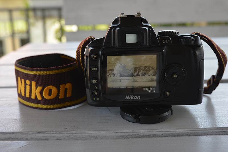 Aparat je prepravljen za IR fotografiju tako da je sa senzora uklonjen hot filter i na njegovo mjesto umetnut IR filter.
