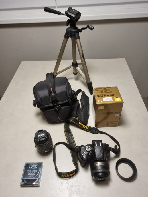 - Nikkor 18-55 mm 1:3.5-5.6G (dio tvrde plastike na navoju objektiva otkrhnut, ali ne utječe na montiranje na aparat)