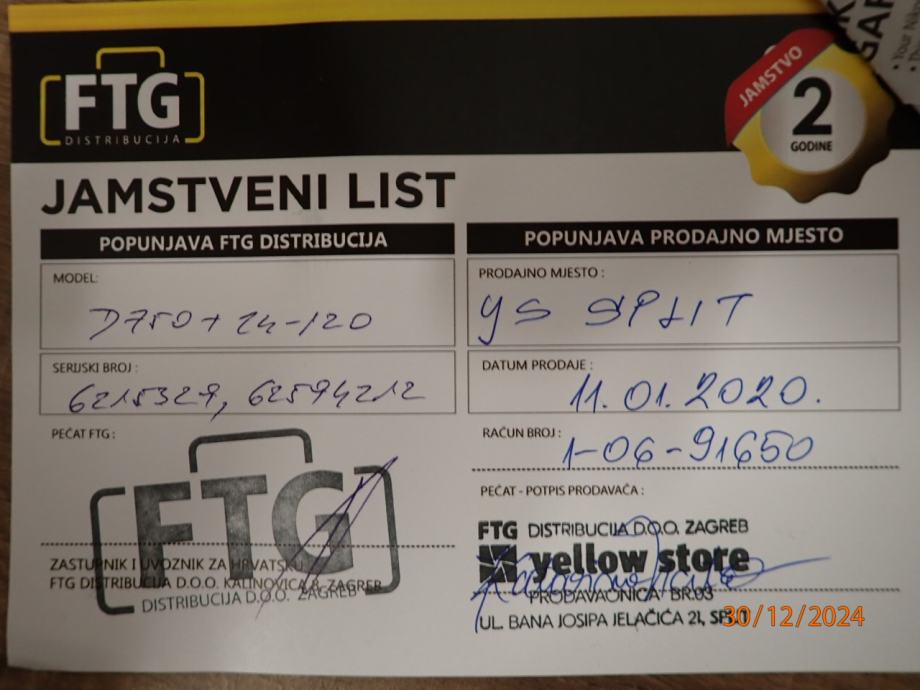 Aparat je jako dobro očuvan i malo korišten.Kupljen u Hrvatskoj 2020.Imam račun a garancija je istekla.