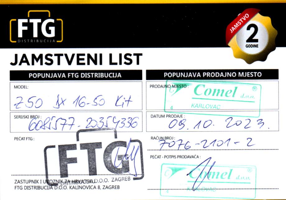 Aparat i objektiv su još pod garancijom do listopada 2025. godine. (Račun i garancija).