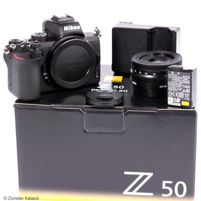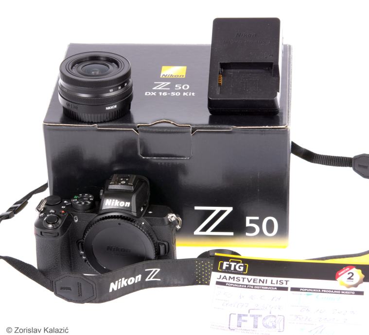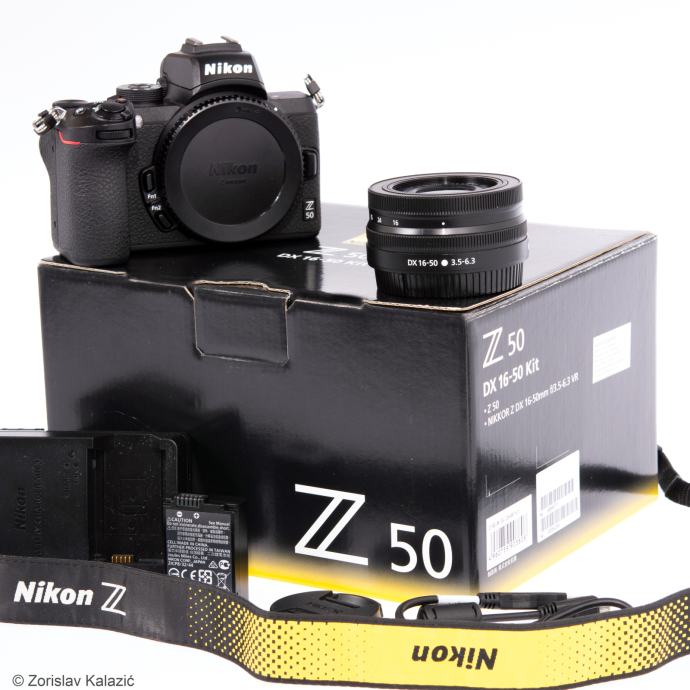 Uz posebno elegantan dizajn, Nikon Z 50 je digitalni fotoaparat bez zrcala, DX formata sa novim Z bajonetom. Sposoban i za fotografiju i za video, Z 50 ima CMOS senzor od 20,9 MP i procesor slike EXPEED 6, koji omogućuje brzu izvedbu do 11 fps, pouzdan hibridni AF sustav od 209 točaka s detekcijom oka i zapažene performanse pri slabom osvjetljenju do ISO 51200. Za video snimače, UHD 4K podržan je do 30 fps uz Full HD snimanje do 120 fps za usporenu reprodukciju. Za fino ugađanje vaših fotografija i videozapisa može se koristiti obrezivanje isječaka u fotoaparatu, a 20 kreativnih kontrola slike i 10 postavki specijalnih efekata pomažu vašim slikama dati jedinstven izgled.